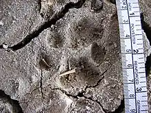 - ↑ Peterson, R. T. & Murie, O. J. (1998). A Field Guide to Animal Tracks. Houghton Mifflin Field Guides. p. 115. ISBN 978-0-395-91094-8.