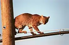 - ↑ Allen, M.; Wallace, C. F. & Wilmers, C. C. (2015). "Patterns in bobcat (Lynx rufus) scent marking and communication behaviors". Journal of Ethology. 33 (1): 9–14. doi:10.1007/s10164-014-0418-0. S2CID 17453824.