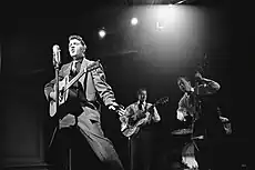 ![]() Presley in a publicity photograph for the 1957 film Jailhouse Rock | |