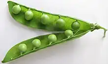 | Closed carpel enclosing the ovules. | Once the ovules are fertilised, the carpels, often with surrounding tissues, develop into fruits. Gymnosperms have unenclosed seeds.[14] | ![]() Peas (seeds, from ovules) inside pod (fruit, from fertilised carpel). |