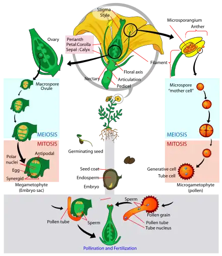 - ↑ Berger, F. (January 2008). "Double-fertilization, from myths to reality". Sexual Plant Reproduction. 21 (1): 3–5. doi:10.1007/s00497-007-0066-4. S2CID 8928640.