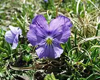 Some specialised angiosperms are able to flourish in extremely acid or alkaline habitats. The sundews, many of which live in nutrient-poor acid bogs, are carnivorous plants, able to derive nutrients such as nitrate from the bodies of trapped insects.[22] Other flowers such as Gentiana verna, the spring gentian, are adapted to the alkaline conditions found on calcium-rich chalk and limestone, which give rise to often dry topographies such as limestone pavement.[23]