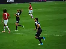 In recent years there has been a trend of playing inverted wingers – wide players stationed on the 'wrong' side of the pitch, in order to enable them to cut inside and shoot on their stronger foot and sometimes provide in-swinging crosses. This tactic was used by Frank Rijkaard, who, whilst at Barcelona, moved Lionel Messi from the left flank onto the right wing, initially against the player's wishes. This allowed him to cut into the centre and shoot or cross with his left foot.[32] Another example of a successful inverted winger partnership was Bayern Munich's pairing of the left-footed Arjen Robben alongside the right-footed Franck Ribéry, on the right and left flanks respectively.[33]