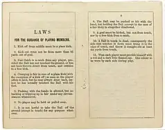- ↑ "Football Rules" (PDF). rugbyfootballhistory.com. Archived from the original (PDF) on 19 February 2009. Retrieved 28 April 2009.