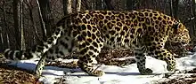 | Amur leopard (P. p. orientalis) (Schlegel, 1857)[29][30] | It is native to the Russian Far East and northern China, but is locally extinct in the Korean peninsula.[1] | ![]() |