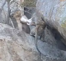 - 1 2 3 Balme, G. A.; Miller, J. R. B.; Pitman, R. T.; Hunter, L. T. B. (2017). "Caching reduces kleptoparasitism in a solitary, large felid". Journal of Animal Ecology. 86 (3): 634–644. Bibcode:2017JAnEc..86..634B. doi:10.1111/1365-2656.12654. PMID 28217865.