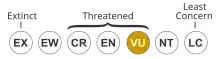 Listed as Vulnerable on the IUCN Red List, leopard populations are currently threatened by habitat loss and fragmentation, and are declining in large parts of the global range. Leopards have had cultural roles in Ancient Greece, West Africa and modern Western culture. Leopard skins are popular in fashion.