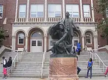 As an adolescent, he initially felt resentment against whites due to the "racial humiliation" that he, his family, and his neighbors often had to endure.[47] In 1942, when King was 13, he became the youngest assistant manager of a newspaper delivery station for the Atlanta Journal.[48] In the same year, King skipped the ninth grade and enrolled in Booker T. Washington High School, where he maintained a B-plus average.[46][49] The high school was the only one in the city for African-American students.[18]