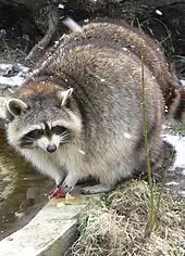 - ↑ Bluett, Robert; Craven, Scott (1999). "The Raccoon (Procyon lotor)" (PDF). Cooperative Extension. Board of Regents of the University of Wisconsin System: 2. Archived from the original (PDF) on October 31, 2008. Retrieved December 7, 2008.