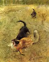 - ↑ Sargeant, Alan B & Allen, Stephen H. (1989). "Observed interactions between coyotes and red foxes". Journal of Mammalogy. 70 (3): 631–633. Bibcode:1989JMamm..70..631S. doi:10.2307/1381437. JSTOR 1381437. Archived from the original on 14 November 2007.
