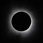 • Totality—the Moon obscures the entire disk of the Sun and only the solar corona is visible.