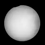 • First contact—when the Moon's limb (edge) is exactly tangential to the Sun's limb.