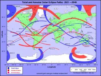 37. Espenak, Fred (March 24, 2008). "World Atlas of Solar Eclipse Paths". NASA Eclipse web site. NASA Goddard Space Flight Center. Archived from the original on July 14, 2012. Retrieved January 15, 2012.