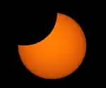 During a partial solar eclipse, the Moon blocks only part of the Sun's disk (October 25, 2022).