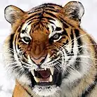 | Siberian tiger formerly P. t. altaica (Temminck, 1844)[24] | This population lives in the Russian Far East, Northeast China and possibly North Korea.[17] The Siberian tiger has long hair and dense fur.[24] Its ground colour varies widely from ochre-yellow in winter to more reddish and vibrant after moulting.[25] The skull is shorter and broader than the skulls of tigers further south.[19] | ![]() |