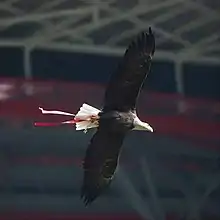Águia Vitória is the mascot of Portuguese football club S.L. Benfica. Before every Benfica match at the Estádio da Luz, the eagle (águia) flies around the stadium and, in the vast majority of cases, eventually lands on top of the club's crest without the eagle symbol, completing it.[1][2] On occasion, the exhibition flight does not go as expected, with the eagle missing the landing or flying out of the stadium.[3][4]