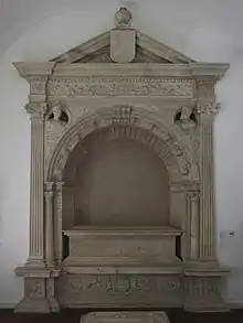 Álvaro da Costa died probably around August 1540.[2] He was buried in the Convent of Our Lady of Paradise, in Évora, in an elaborate Mannerist arcosolium sculpted still in Costa's lifetime by Nicolas Chantereine. When the convent was abandoned and later demolished in the 19th century, the funerary monument was moved to what would become Évora Museum, where it still stands today.[3]