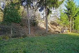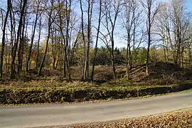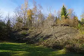 The shaft closed permanently in September 1958 and was backfilled the following year. As with the other shafts in the coalfield, a concrete slab was then poured with a marker indicating the name, usable diameter and depth.[5][9][i 3] The installations were dismantled and the buildings demolished before the vegetation reclaimed the site. In 1997, the shaft site was rediscovered and integrated into the Etançon historical and mining circuit.[10] It is now also part of the Étançon and mining towns hiking trail created by the Ballons des Vosges Nature Park.[5]