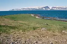 In the bottom of the fjord lies the former trading post Arngerðareyri.[4]