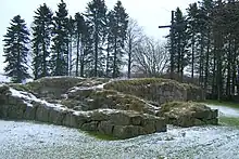 The only building still standing from Övraby today is the ruin of the stone church, known today as Övraby Kyrkoruin. The church's roof is the oldest surviving example of an ornate ridge purlin in Sweden, dating back to the 12th century.[3] In 1911 a Roman burial site was excavated from Övraby, deposited in a cist made of thin limestone slabs.[4]