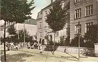 Øregård Gymnasium was founded in 1903 by V. Plockross under the name Plockross' Skole. The building was located at Duntzfelts Allé 8. It received its current name when Gentofte Municipality took over the school in 1919. The current main building on Gersonsvej was inaugurated in 1924. It was designed by G. B. Hagen and Edvard Thomsen. Gehrdt Bornebusch undertook a renovation of the building in 1977–80.[1] The building was listed in 1995.[2]
