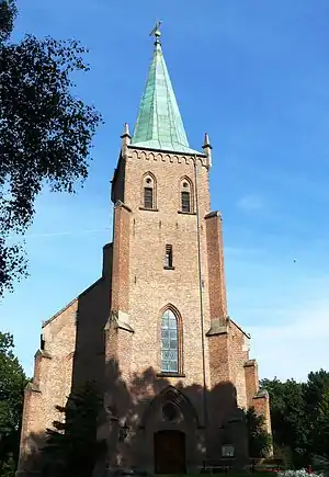 Østre Aker Church is a parish church at the neighborhood of Ulven in northeastern part of Oslo, Norway. The church building from 1860 in neo-Gothic style has exterior walls of brick, while the interior walls are covered with wood. The master masonry brothers Carl, Ferdinand and Albert Unger was commissioned to make the church the most alike Vestre Aker Church as possible. Østre Aker Church was consecrated 5 September 1860 with, among others, Prince Oscar present. Electricity was installed in 1925 and the church got chandeliers in 1928. Architect Helge Thiis was at the same time commissioned to make changes to improve the church interior.[1][2]