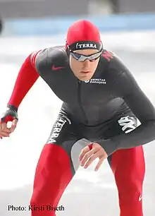 Øystein Grødum (born 15 February 1977) is a Norwegian speedskater, who is a member of Arendal SK. Grødum competed in the 2006 Winter Olympics for Norway, with fourth place on 10,000 metres as his best place, and won the World Cup on long distances in 2004–05.[1] However, he is yet to win an overall championship medal, though he won two distance golds in the 2005 World Allround Championship and a distance gold at the European Championship the same year.