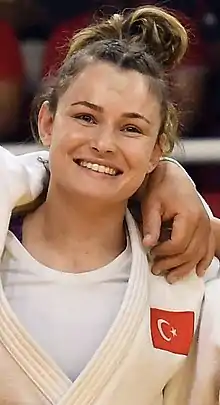 İrem Korkmaz (born 31 August 1998) is a Turkish judoka who competes in international judo competitions. She is a European Junior champion, Islamic Solidarity Games champion, World Cadets bronze medalist and Mediterranean Games bronze medalist. She has also won the Turkish national championships six times.[1][2][3]