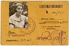 To ensure no contact between the Jewish and non-Jewish populations of the city, two German Order Police battalions were assigned to patrol the perimeter of the ghetto, including the Reserve Police Battalion 101 from Hamburg.[17] Within the ghetto, a Jewish Police force was created to ensure that no prisoners tried to escape. On 10 May 1940 orders went into effect prohibiting any commercial exchange between Jews and non-Jews in Łódź. By the new German decree, those caught outside the ghetto could be shot on sight. The contact with people who lived on the "Aryan" side was also impaired by the fact that Łódż had a 70,000-strong ethnic German minority loyal to the Nazis (the Volksdeutsche),[5] making it impossible to bring food illegally. To keep outsiders out, rumours were also spread by Hitler's propaganda saying that the Jews were the carriers of infectious diseases.[5] For the week of 16–22 June 1941 (the week Nazi Germany launched Operation Barbarossa), the Jews reported 206 deaths and two shootings of women near the barbed wire.[18]