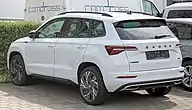 The Škoda Karoq is a compact crossover SUV (C-segment) designed and built by the Czech car manufacturer Škoda Auto. Introduced in 2017, the vehicle is based on the Volkswagen Group MQB platform, and replaced the Škoda Yeti.[6] The car slots between the smaller Kamiq and the larger Kodiaq.