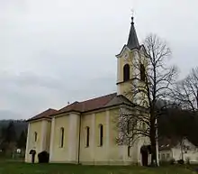 The local parish church is dedicated to Saint Vitus and belongs to the Roman Catholic Archdiocese of Ljubljana. It was built between 1882 and 1884.[7]