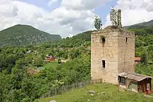 During the Bosnian War (1992–95), Žepa became one of three Bosniak enclaves in eastern Bosnia surrounded by the Army of the Republika Srpska (VRS), along with Srebrenica, a short distance downstream, and Goražde farther upstream, after other towns such as Foča, Bratunac and Zvornik were taken by the VRS. In 1993, the town was declared a United Nations safe area and had a small Ukrainian Army unit of UNPROFOR peacekeepers stationed there. The Bosniak military commander of the enclave was Colonel Avdo Palić, who disappeared soon after the town was captured by the VRS on 25 July 1995. According to eyewitness accounts, he was murdered at the orders of VRS General Ratko Mladić.[2] 116 Bosniaks were killed in the takeover.[3]