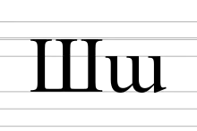In some fonts, it is homoglyphic with the Cyrilllic letter Sha, and in this manner it was used in the Tsakhur language,[1] representing the pharyngealized close central unrounded vowel /ɨˤ/. It is represented today by the digraph ЫI.
