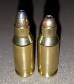 The .22 TCM 9R (right) uses a shorter bullet than the regular round (left).
