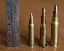 .25-35 Winchester (center) with .223 Rem (left) and .308 Win (right).