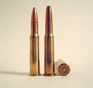 The .30-40 Krag, also known as the .30 U.S. and .30 Army, was a rifle cartridge developed in the early 1890s to provide the U.S. armed forces with a smokeless powder cartridge suited for use with modern small-bore repeating rifles to be selected in the 1892 small arm trials. Since the cartridge it was replacing was the .45-70 Government, the new cartridge was considered small-bore at the time. The rifle ultimately selected for use by the Army was the Krag–Jørgensen, formally adopted as the M1892 Springfield. The cartridge was also used in the M1893, M1895, M1897, and M1900 Gatling guns.[3][4][5][6]