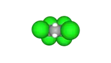 The compound can be produced quantitatively also by reacting carbon tetrachloride CCl4 and 1,1-dichloroethene Cl2C=CH2 at 80-150 °C, with a copper-based catalyst, such as copper(I) chloride or copper(II) chloride, and possibly an amine as co-catalyst.[3][8][9][10][11][12][13][14] The same process can generate higher chlorinated alkanes of the form H3C−(CH2−CCl2)nCl.[3][11]