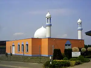 The 100-Mosques-Plan is the project of the Ahmadiyya Muslim Jamaat in Germany to build 100 new mosques. It was initiated by Mirza Tahir Ahmad, the Khalifatul Masih IV, during the centenary celebrations of the community in 1989. The project is completely financed by the Ahmadiyya Muslim Community, Germany, through collections from the members. The plans and the execution of the projects is also mostly performed by German Ahmadis voluntarily.[1] Ahmadiyya Muslim Community has total of 52 mosques and 65 prayer centres in Germany.