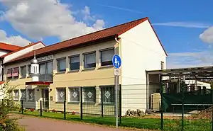 16. Bait-ul-Muqiet Mosque Wabern Hesse 2007 "Mosque of the Sustainer“, foundation May 2005, completed 23 Nov 2007, plot 2956 m2, one minaret 9 m height, 54 members, Mosque 330 m2, prayer halls 2 * 70 m2[13] 51°5′59.6″N 9°21′22.7″E / 51.099889°N 9.356306°E / 51.099889; 9.356306 (Bait-ul-Muqiet Mosque)[M 18]