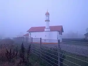 46. Bait-ul-Baseer Mosque Nahe Schleswig-Holstein 2019 "House of the All-Seeing“ in Mahdi Abad, plot 176.479 m2 bought in Jun 1989,[59] foundation 14 Jun 2011,[60] completed on 25 Oct 2019.[61] 53°47′49.5″N 10°8′17.1″E / 53.797083°N 10.138083°E / 53.797083; 10.138083 (Bait-ul-Baseer Mosque)[M 48]