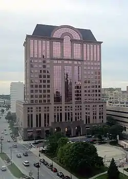 1000 North Water Street is a 16-story 296-foot-tall (90 m) post-modern high-rise office building in Milwaukee, in the U.S. state of Wisconsin. It is the twelfth-tallest building in Milwaukee, and was completed in 1991, right at the tail end of a construction boom in Milwaukee that started in the late 1980s, and included 100 East Wisconsin, Northwestern Mutual Tower, and the Milwaukee Center. The facade and windows are a light pink color, giving it a unique appearance among Milwaukee's skyline.[2][3]