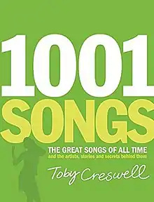 1001 Songs: The Great Songs of All Time and the Artists, Stories and Secrets Behind Them[2][3][4] is a compendium of notable popular recordings collected by Australian rock journalist and critic Toby Creswell. The book was initially published in 2005 by Hardie Grant Books (Prahran, Victoria) and subsequently published in the United States by Thunder's Mouth Press (an imprint of the Avalon Publishing Group) in 2006. It is not a collection of songs, but of the stories behind what Creswell considers are the great songs of all time – from George Gershwin to Missy Elliott, from Bob Dylan to Alicia Keys, from Frank Sinatra to The Offspring, from Leonard Cohen to Pulp. The book also features over 400 photographs and album covers.