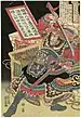 | 38 | 2 | Disha (地煞); Malignant Star (地煞星) | Huang Xin (黄信; 黃信; Huáng Xìn; Huang Hsin) | "Guardian of Three Mountains" (鎮三山) | Scouting general (cavalry) | Tiger Cub Scouting General | Imperial general | Qingzhou (in present-day Shandong) | 33 | Sword of Death (喪門劍) | ![]() | |