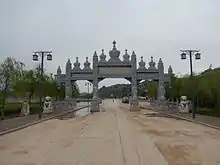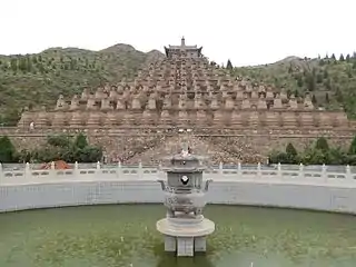 The One Hundred and Eight Stupas (Chinese: 一百零八塔; pinyin: Yībǎilíngbā Tǎ) is an array of one hundred and eight Buddhist stupas (also called dagobas) on a hillside on the west bank of the Yellow River at Qingtongxia in Ningxia, China. The stupas were originally constructed during the Western Xia, but have been renovated and rebuilt several times over the centuries.