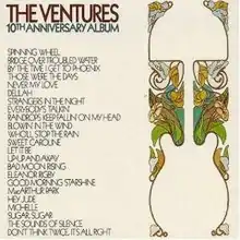 10th Anniversary Album is a studio album by the Ventures, which was released to commemorate the band's 10th anniversary in 1970.[2][3] It is a double LP that features covers of classic 1960s pop hits, including songs by The Beatles and Simon & Garfunkel. It also contains songs from the early 1970s, such as "Who'll Stop the Rain" and "Bridge Over Troubled Water." The album peaked at #91 on the Billboard 200 chart.