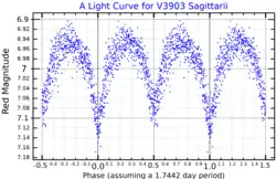 A red-light light curve for V3903 Sagittarii, adapted from Wraight et al. (2011)[1]