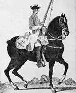 In 1755, each dragoon regiment added a reconnaissance or 'light' troop; in February 1779, these were detached, that from the 11th helping form the 19th Light Dragoons, which in 1862 became the 19th Royal Hussars.[3] While dragoons had previously been mounted infantry, as part of a tactical rethink, the 11th was re-designated in 1783 as 'light cavalry' and became the 11th Regiment of Light Dragoons.[3]