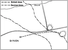 In July 1915, 171st Tunnelling Company moved to Ploegsteert and commenced mining operations near St Yves at the southern end of the Messines ridge.[1] The four deep mines at St Yves, charged with a combined load of 146,000 pounds (66,000 kg) of ammonal, formed part of the mine galleries that were dug by the British 171st, 175th, 250th, 1st Canadian, 3rd Canadian and 1st Australian Tunnelling companies as part of the prelude to the Battle of Messines (7–14 June 1917), while the British 183rd, 2nd Canadian and 2nd Australian Tunnelling companies built underground shelters in the Second Army area.[10]