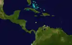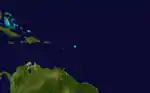 This tropical storm is known from having wrecked the schooner Three Sisters on the night of October 9 at Saint Martin in the eastern Caribbean. It may also have been responsible for seven inches of rain falling on Barbados on October 7 but is uncertain.[2] It is estimated that the storm reached its peak with winds of 50 mph (80 km/h) on October 9.[5]