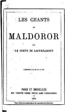 Title page of Les Chants de Maldoror by Comte de Lautréamont